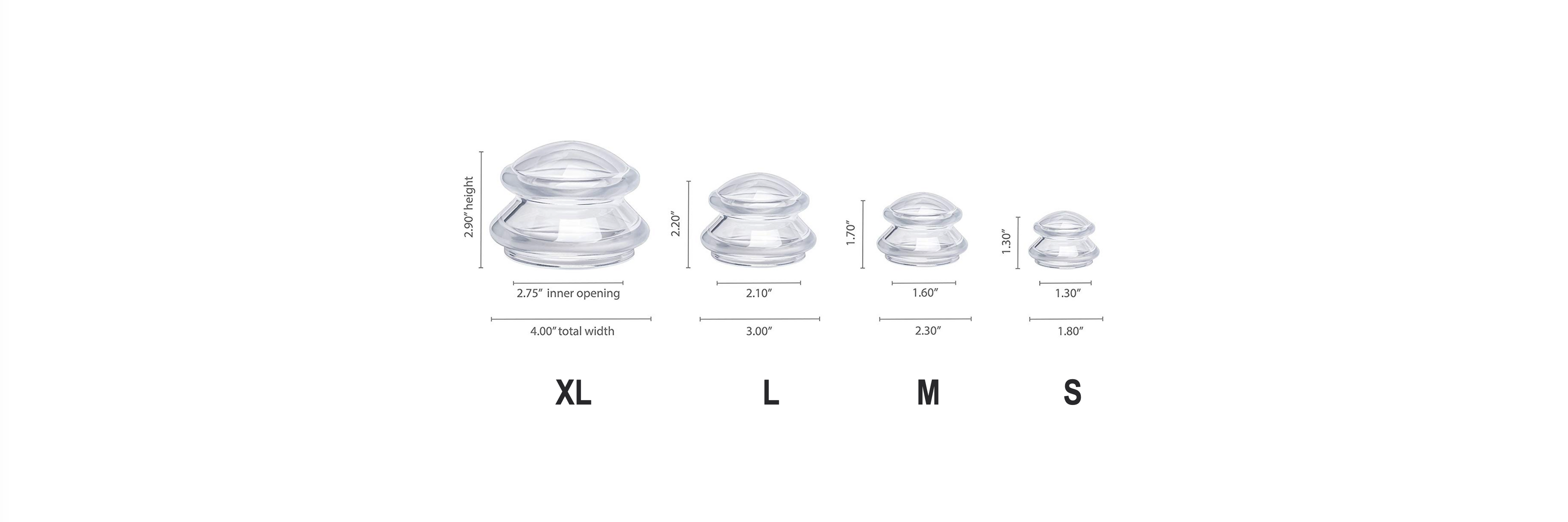 Suitable for both stationary cupping (10–20 minutes) and moving/gliding methods with lotion or oil.