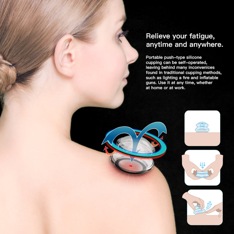 Portable cupping design, no fire, air gun.Press adsorption, they can be used repeatedly.Food grade silicone material,can be applied to shoulder,waist,knee,hands, feet, legs, joints and other parts.
